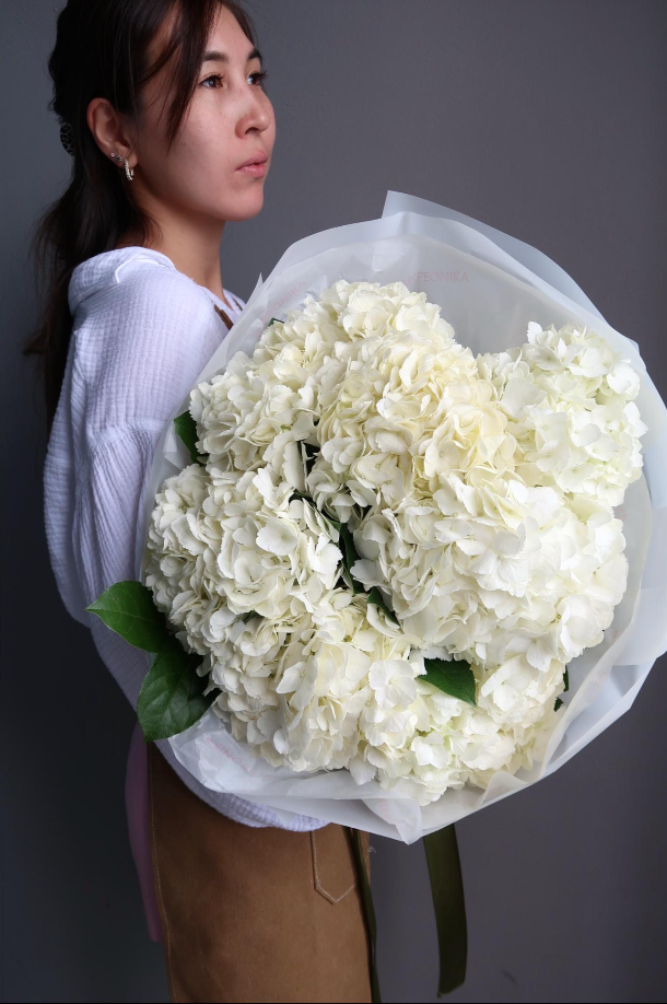 A timeless bouquet of lush white hydrangeas designed to evoke softness, elegance, and quiet luxury. Full, cloud-like blooms come together in a refined arrangement that feels effortless yet elevated, making it perfect for meaningful moments, refined gifting, or serene interiors.